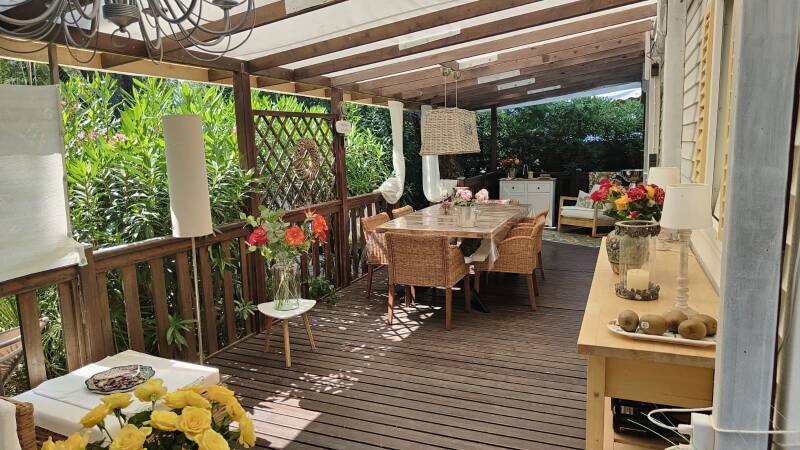 "Mobilehome Annelies" features two bedrooms with an additional sofa bed in the living room, air conditioning, washing machine, dishwasher, Dolce Gusto, Nespresso, microwave, TV, oven, heated terrace and about 300 meters from the beach.